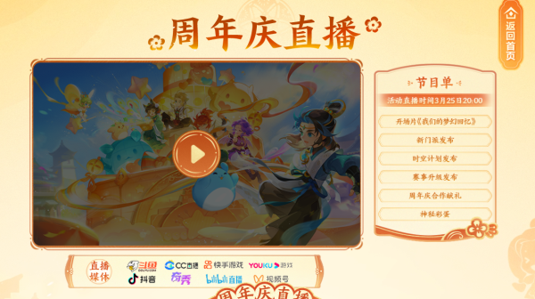 参加周年庆直播,参与观看和互动,即有机会抽取化灵露、高级藏宝图等稀有道具。