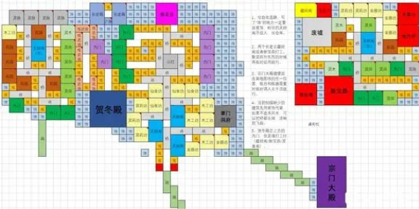 弟子的工作地点应保持道路畅通,否则弟子不会去工作,风水区可以与工作区分开来,另一块土地都装满了风水建筑,不需要留下间隙,更大程度地增加风水。