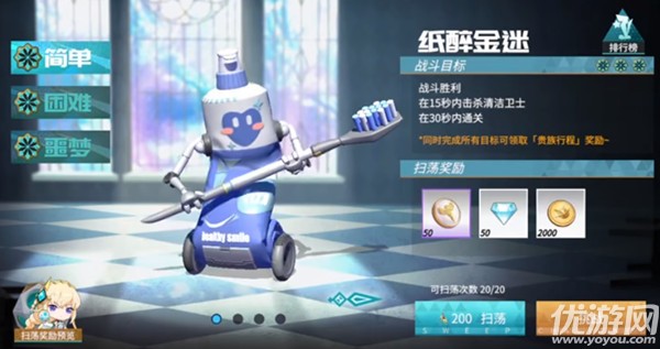 活动说明:活动期间, 不同难度的关卡boss可以获得丰厚的奖励。使用「晚宴香槟」可以轻松扫描通关副本,获得「礼服纽扣」和成长资源。
